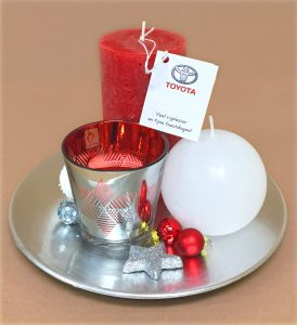 Aan het einde van het jaar is het misschien wel leuk om aan iemand waar goed zaken mee gedaan is een sfeervol cadeau te geven, maar uiteraard wel met een link naar uw bedrijf. Bij Wax Art Studio maken we mooie kerstschalen met kaarsen en decoraties, waarbij een kaars voorzien kan zijn van een ligo en/of tekst of waar een zog. lontkaartje aan hangt met uw logo en/of tekst.