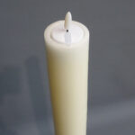 2. Kleine kaarsjes voor o.a. thuisgebruik van 15 of 20 cm. hoog en 7,5 cm. dik vervaardigd van wax en voorzien van een LED-lampje. De kaars werkt op 2 x AA batterijen (bijgeleverd).